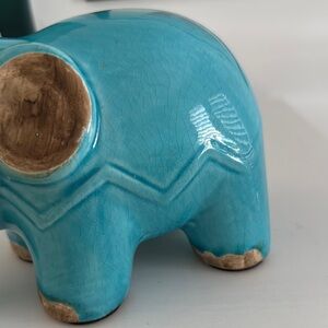 Turquoise and Brown Ceramic Baby Elephant Figurine with Crackle Finish