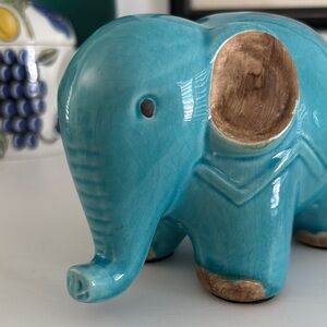 This cute little baby elephant would be a nice pop of color in your home, perfect for animal lovers or elephant enthusiasts! Its crackle finish gives it a vintage vibe; it is excellent condition, there is a small flaw on the glaze on the bottom of the elephant, please the last picture, but otherwise, no cracks or chips or discoloration.