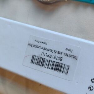Stylish watch set featuring a turquoise watch with a crystal-studded face and a brown leather band. Perfect for any occasion.