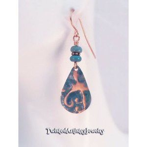 One-Of-A-Kind Turquoise and Enameled Copper Teardrop Earrings Handmade