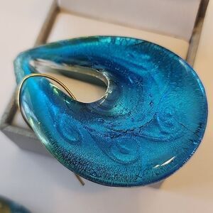 Turquoise and Gold Lampwork Earrings Glass Art Artisan Inventory Location Box 25