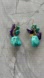 Elegant dangle earrings featuring vibrant turquoise and deep purple stones. Perfect for adding a pop of color to any outfit.