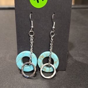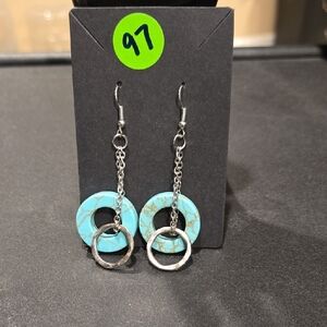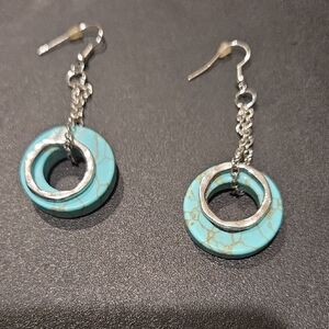 Matching necklace also in my closet. If you buy the necklace, I'll throw these in for free! Elegant turquoise and silver dangle earrings perfect for any occasion. Add a touch of sophistication to your outfit. No flaws. Perfect condition. Measurements on photos.