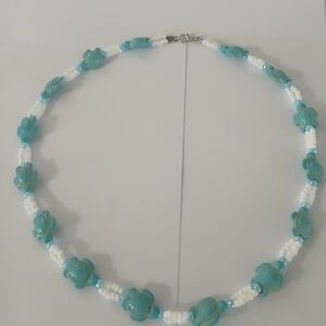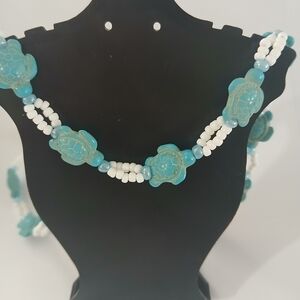 Elegant howlite turquoise turtles and white accent beaded necklace perfect for any occasion. Add a touch of color to your outfit with this beautiful piece. Handcrafted and designed in Key Largo, Florida.