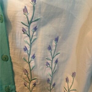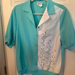 Stylish turquoise and white shirt with floral design. Perfect for casual wear.