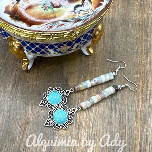 Turquoise and amazonite extra long dangle earrings/western/rustic bohemian