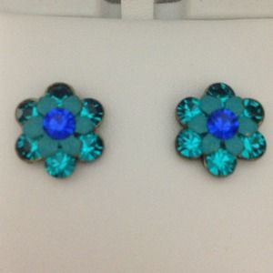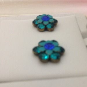 Beautiful stud earrings. Turquoise and blue flowers with gold backs
