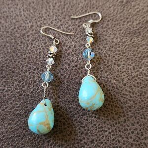 Turquoise and crystal dangle drop statement bohemian earrings