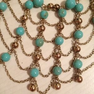 Bright teal blue and gold. Barely worn. Lies at breastbone but adjustable lobster clasp. Great condition.