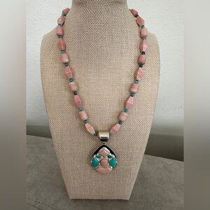 Turquoise and pink beaded necklace with gorgeous pendant! By Jay King