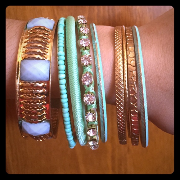 Set of 8 gold and turquoise bangles! Very fun and loud. Great for that cute gypsy look ๐๐๐