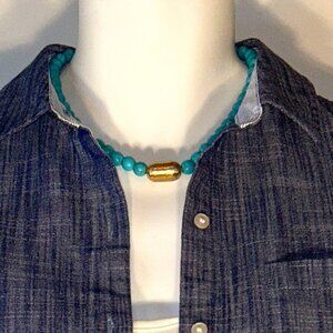 Turquoise bead necklace gold bead detail 15" (19") Boho Western Timeless Chic