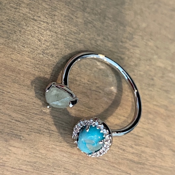 This ring is a stunner! Crafted in luxurious polished silver brass, it is both delicate and completely cool at the same time. The opal stone shines while the turquoise stone quietly complements the look. This beauty is the pop of color you’re looking for. NWOT.