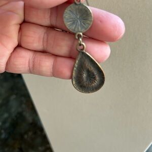 Pretty dangle earrings. Turquoise colored. Great shape. See pics for measurements