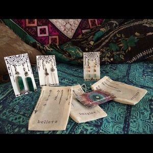 Turquoise, Crystal, & vegan leather. Handmade and one of a kind. Made with love and infused with positive vibes. They come with a hand drawn mandala designed card and inspiring message scrolled on the backside. They are packaged in a uniquely designed re-usable tea bag. These beauties are sure to make you smile. Xoxo