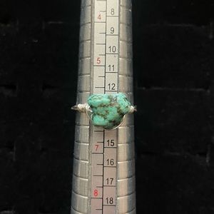 Handmade Turquoise gemstone wire wrapped ring with silver colored wire