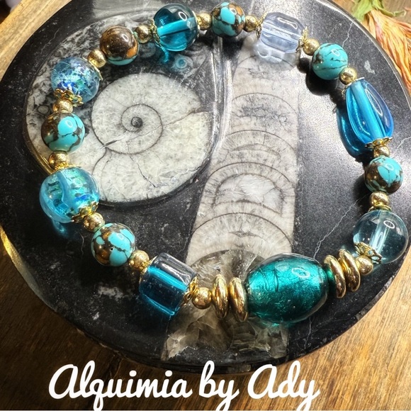 Turquoise gold statement bracelet