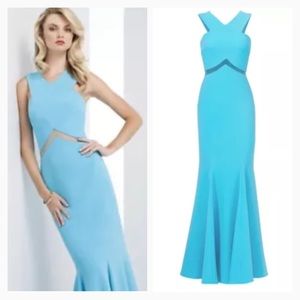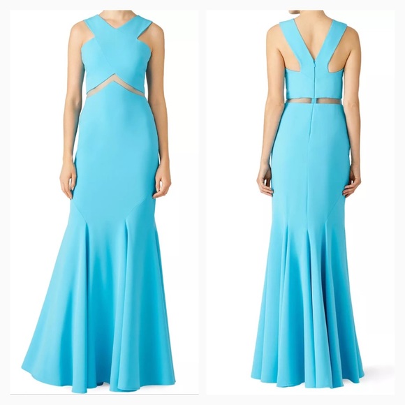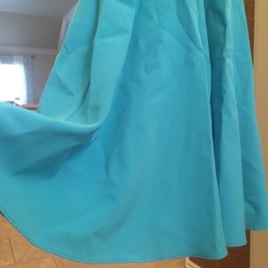 Pretty, bright turquoise dress. Never worn but this is a reposh so maybe it was worn by previous owner. Not sure but she claimed she bought it like that. See flaws above photos. Has a hole in the mesh area in the back. Slight watermark towards the bottom. Probably will come out but have not tried washing it.