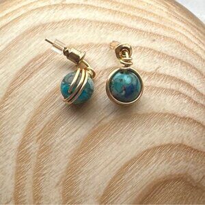 Turquoise handcrafted studs gold halo/ protection and peace turquoise