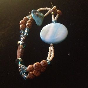 Turquoise beaded closure , bamboo beads, big shell bead as focal point, original only one made like this