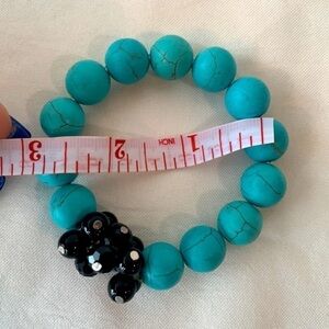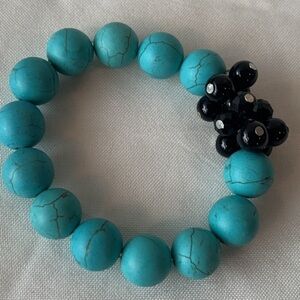 Turquoise natural stone black faceted glass metallic bead southwestern