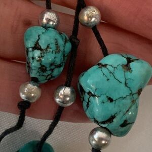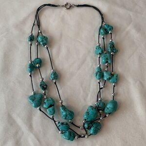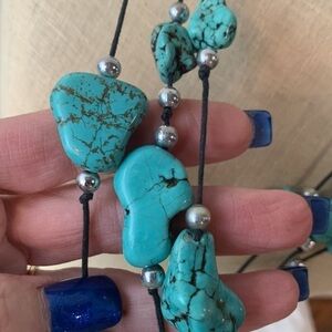 Turquoise natural stone southwestern chunky raw bead stations double strand boho