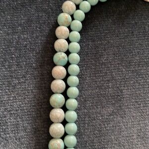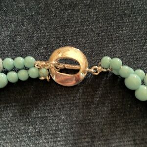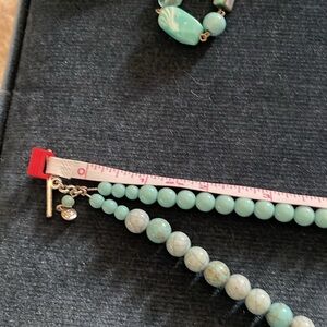 Double strand Lauren Conrad reconstituted turquoise necklace. Silver plated toggle closure. 18 inches long. Not adjustable. Very good condition, toggle closure has some tarnishing. Pet friendly non-smoking home.