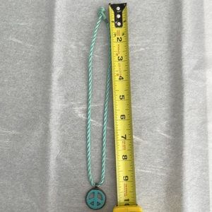 Turquoise peace sign necklace on rope chain. Fun hippie look