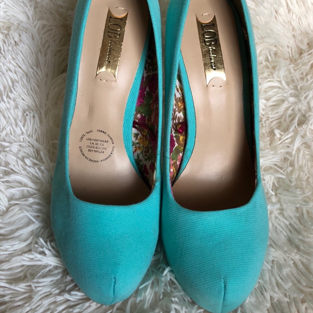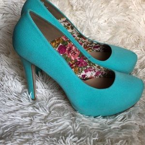 Super cute turquoise pumps never worn. Cloth material