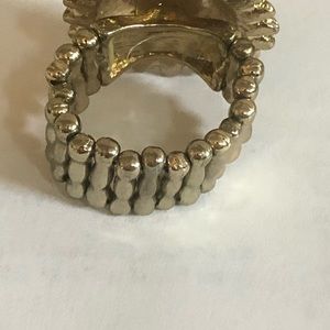 Gorgeous turquoise and gold ring. Not real stones/gold. Stretches to fit all sizes. Very gently worn.