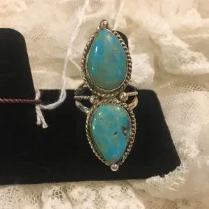 Handmade sterling silver and kingman turquoise ring size 8.2. Checkout Lazy.K3.Leather on Instagram or Facebook to see more or place an order!