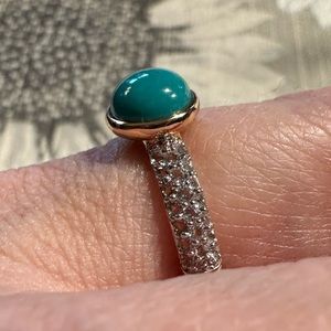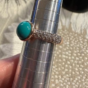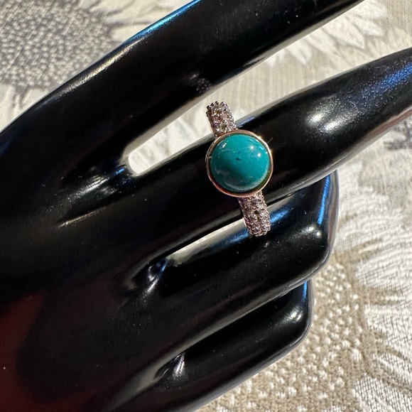 Size 8 ring by MILOR or Italy with round turquoise stone and rhinestone channels. Shiny and gorgeous! Check my closet for other turquoise jewelry to wear with it!