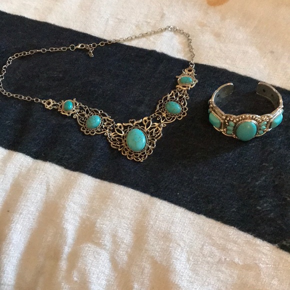 Turquoise stone necklace and bracelet set. Wore once to a country western party brand new.