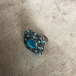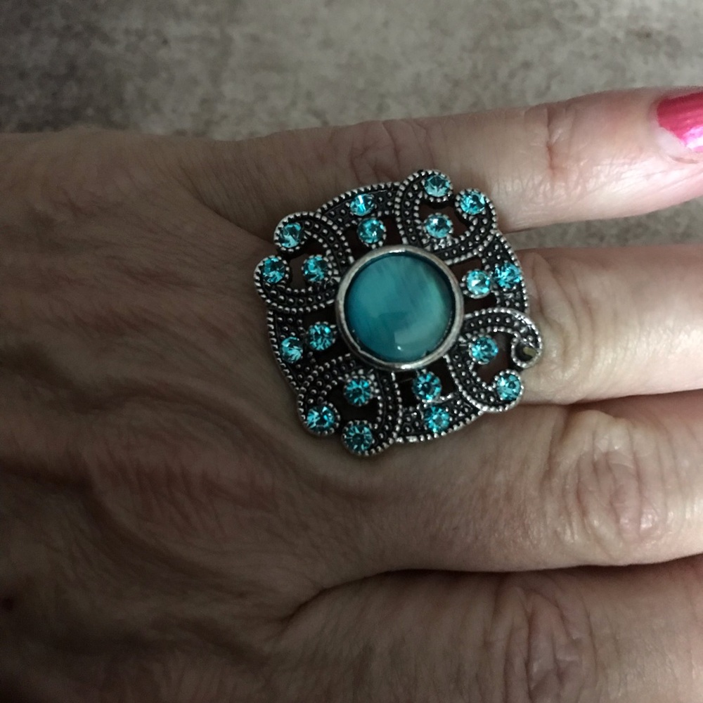 Turquoise silver tone adjustable statement ring