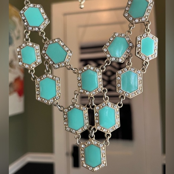 Turquoise statement necklace with a little bit of bling.
