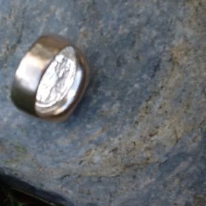 Striking and comfortable. Women's size 8- while flattering on a woman's hand ...it could also look really attractive on a man's hand