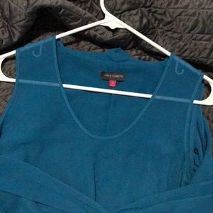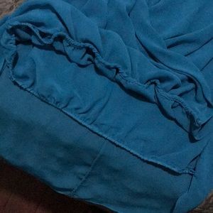 Really pretty turquoise tunic length blouse. 2 layer sheer blouse. Back is longer than front. Never worn, no tag