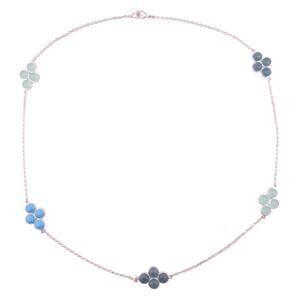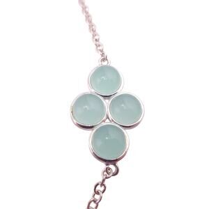 Turquoise with Green Round Cabochon Mineral Stones Silvertone Necklace 30" NWOT