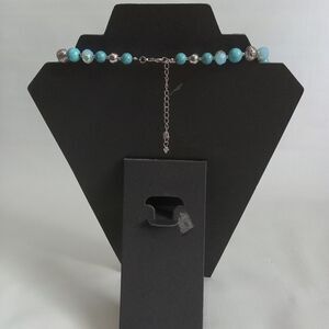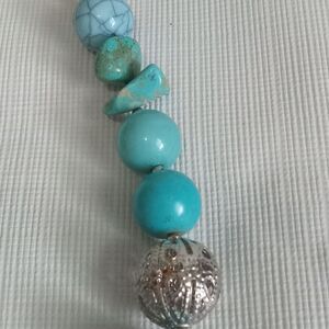 Turquoise Blue and Silver Toned Assorted Beads Single Strand Fashion Necklace