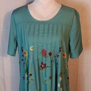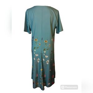 This turquoise floral short sleeve midi dress is a size Large with a pit to pit measuring 21" and a length of 46". It has pockets. In like new condition. Offers are welcome.