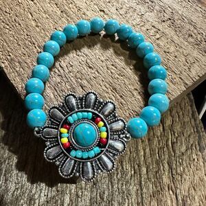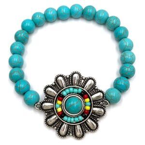 * Unique Design: Crafted with beautiful turquoise seed beads and a charming flower concho, this bracelet radiates bohemian flair and Southwestern charm.