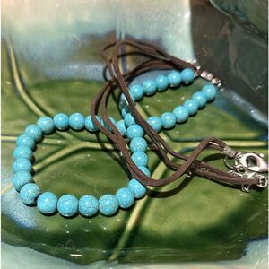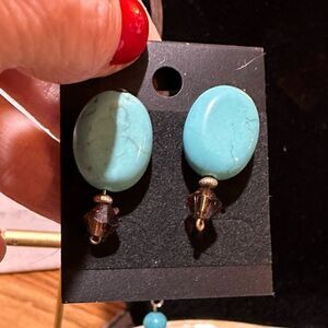 Turquoise Long Necklace & Pierced Earrings (Genuine Stone)