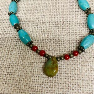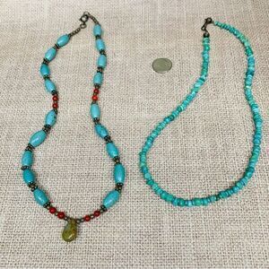 Faux Turquoise with Jasper drop 18 in. Turquoise Chip Necklace 16 in.