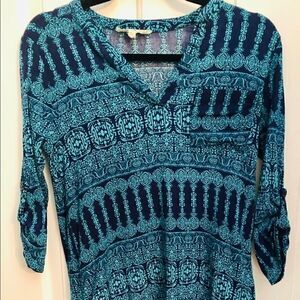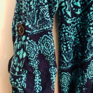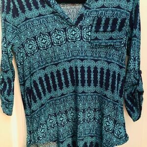 Turquoise Rose hi low women’s shirt with roll tab sleeves.