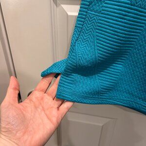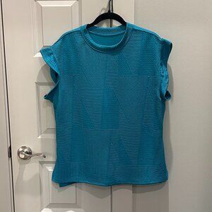 TurquoiseTextured Knit Matching Short Set. Size L. NWOT. Short, ruffle sleeve, crew neck, slits on site of the top. Shorts with pockets, elastic drawstring waist.