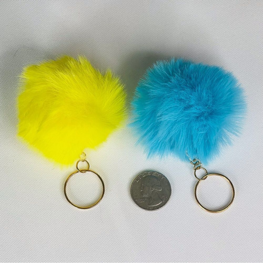 Turquoise & Yellow Fuzzy Small Pom Keychain Set