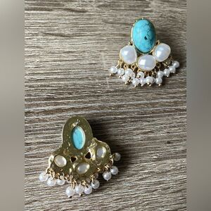 Bohemian turquoise with Pearl style details stud earrings in gold hardware