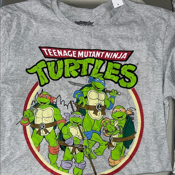 NWOT Official size medium t-shirt in heather gray. Features bright green TMNT characters graphic for fun, playful style. Soft, comfortable fabric for everyday wear