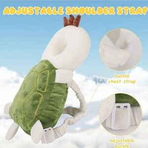 very cute and soft, plush turtle theme baby head protector backpack, barely used, in great condition!! great for baby safety!!