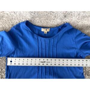 Turtle Bay Size L Pleated Minimalist Casual Top Blue Short Sleeve Pullover